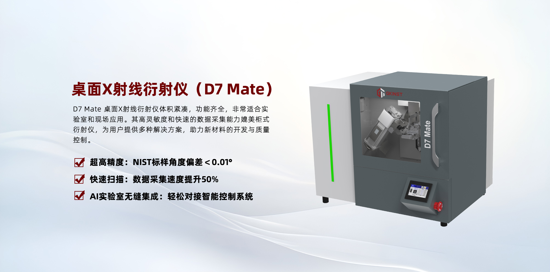 安徽國(guó)科儀器科技有限公司是一家專業(yè)從事X射線結(jié)構(gòu)分析設(shè)備研發(fā)、生產(chǎn)及銷(xiāo)售的創(chuàng)新型國(guó)家高新技術(shù)企業(yè)。自成立以來(lái),國(guó)科儀器始終關(guān)注國(guó)際上新技術(shù)、新理念的發(fā)展,匯集了一批在X射線結(jié)構(gòu)分析領(lǐng)域經(jīng)驗(yàn)豐富的高水平研發(fā)團(tuán)隊(duì)。國(guó)科儀器在小角散射儀(SAXS)、粉末衍射儀(XRD)、高壓衍射儀(HPXRD)、桌面 X 射線吸收精細(xì)結(jié)構(gòu)譜儀(XAFS)及國(guó)家大科學(xué)裝置等高端X射線結(jié)構(gòu)分析設(shè)備領(lǐng)域已順利實(shí)現(xiàn)產(chǎn)品定型與銷(xiāo)售,先后與各大科研院所和企業(yè)、事業(yè)單位取得合作,為客戶提供全集成、高附加值的全方位解決方案,并以良好的性能指標(biāo)、靈活的定制化能力和超高的性價(jià)...